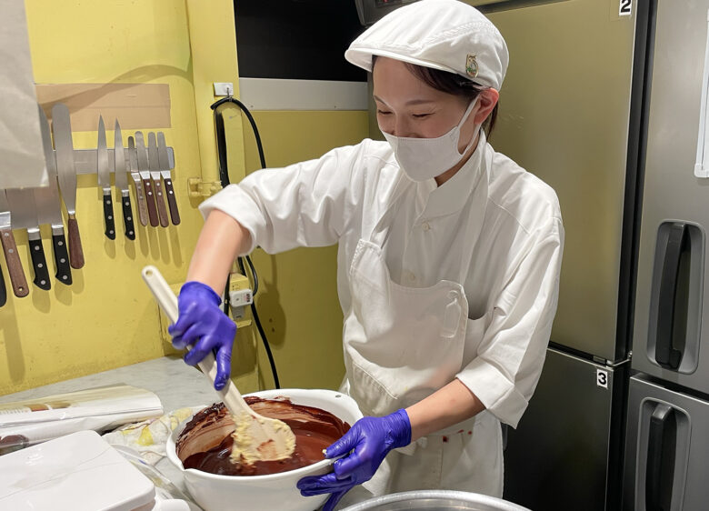A:きっかけは小学生の頃。料理人を目指していた兄の文化祭に行き、そこで見たパティシエの方が作るケーキに心を奪われました。「私もこれをやりたい」と思ったその瞬間から、ずっとこの道を歩いています。専門学校を卒業後、フランスにも留学し、以来パティシエとして仕事を続けてきました。同級生の多くは別の道に進んでいく中で、自分は気づけばもう10年以上この仕事をしてきました。それだけ長く続けてこられたのは、やっぱりこの仕事が好きだからだと思います。子どもの頃の夢を今も形にできていることが、何より嬉しいです。